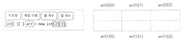 - 다음은 2행 3열의 이차원 배열을 선언하는 코드의 논리적 구조입니다.