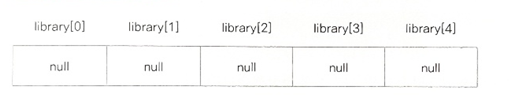 - Book[] library = new Book[5]; 문장을 보면 Book 인스턴스 5개가 생성된 것처럼 보이나 Book 인스턴스 5개가 바로 생성되는 것은 아닙니다. 이때 만들어 지는 것은 인스턴스 주소를 담을 공간 입니다.
